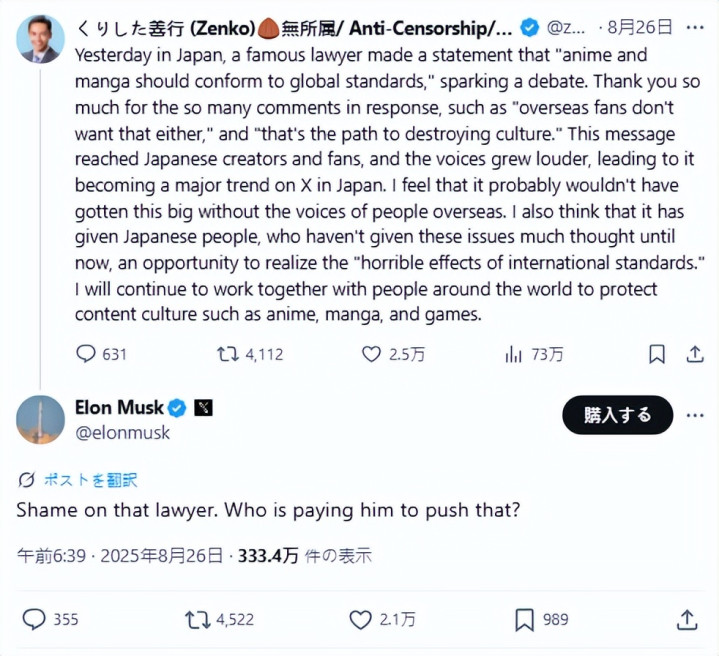 这件事原本只是日本动漫圈内部的讨论,直到前日本议员栗下善行用英文发帖,向海外网友解释整个事件。